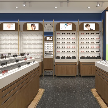 Gabinetes de exhibición personalizados especializados para tiendas ópticas-Iluminación LED a prueba de polvo-Estantes ajustables
