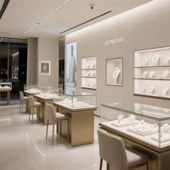 Vitrina de cristal de escritorio de madera maciza de gama alta, accesorios de exhibición de joyería circundantes de acero inoxidable, escaparate directo de fábrica